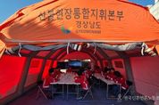 전국신문언론노동조합 강찬희 기자 | 경상남도는 24일 오전 진주시 서부청사에서 산불현장 통합지휘본부 운영 자체 훈련을 실시했다고 밝혔다. 이번 훈련은 실제 산불 발생 시 통합지휘본부를 신속히 가동하고 현장 대응 역량을 점검하기 위해 마련됐다. 산림관리과장 등 관계 공무원 19명이 참여해 대형 산불 확산 상황을 가정한 고강도 실전 훈련을 진행했다. 주요 훈련 내용은 ▲산불현장 통합지휘본부 설치 및 해체 ▲지휘 차량, 무선망, 모니터 등 필수 장비 운영 ▲담당별 개인 임무 숙지 및 대응 교육 등이다. 이재철 경남도 환경산림국장은 “산불 대응에서는 초기 지휘 체계 가동이 중요하다”며, “현장 대응 역량 강화를 위해 실전형 훈련을 지속하겠다”고 밝혔다. 경남도는 이번 훈련을 통해 지휘 체계의 완성도를 높이고, 실제 재난 상황에서 즉각 작동할 수 있는 빈틈없는 산불 대응 태세를 확립해 나갈 계획이다.