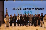 전국신문언론노동조합 강찬희 기자 | 재외동포청은 11월 18일부터 20일까지 ‘제27회 재외동포 문학상 시상식 및 수상자 초청행사’를 성황리에 개최했다. 올해로 27번째를 맞이한 재외동포 문학상은 한글 문학 창작을 통해 재외동포의 정체성을 고취하고, 재외동포와 우리 국민들 간의 문화적 소통을 확대하기 위해 마련된 공모전이다. 금년에는 총 61개국 965명이 2,467편을 접수해, 응모자가 전년도 대비 91%가 증가하며 사상 최대의 참가율을 보였다. 이번 시상식에는 치열한 경쟁률을 뚫고 선정된 시·단편소설·수필 3개 부문, 총 12명의 수상자가 참석했다. 특히, 올해 처음으로 수상자 전원을 초청해 국내 문인들과의 교류 및 문화체험 프로그램을 진행했다. 김경협 재외동포청장은 18일 수상자들과 오찬을 함께하며 수상을 축하했다. 이 자리에서 김경협 청장은 “금년도에 처음으로 수상자 전원을 한자리에 모시고 행사를 개최하게 되어 더욱 의미가 깊다”며, “앞으로도 작품활동을 통해 한국 문학의 위상을 높이고 한국과의 유대를 계속 이어나가 주기를 바란다”고 말했다. 시상식은 19일 서울 종