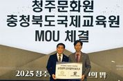 전국신문언론노동조합 김성길 기자 | 충청북도교육청 직속기관인 국제교육원(원장 서강석)은 10일 오후 6시, 청주문화원(원장 강전섭)과 도내 이주배경학생 및 가족의 문화예술 역량 함양과 지역 문화예술교육 활성화를 위한 업무협약을 체결했다고 밝혔다. 협약식에는 서강석 원장과 강전섭 청주문화원장을 비롯해 4명의 관계자가 참석했다. 이번 협약은 이주배경학생들이 다양한 문화예술 활동을 체험하고 지역사회와 자연스럽게 소통할 수 있는 기반을 마련하기 위해 추진됐으며, 양 기관의 프로그램과 자원을 공유‧활용하여 지속 가능한 협력 체계를 구축하는 것을 목표로 했다. 주요 내용은 ▲문화예술 기반 인적‧물적 자원 상호 활용 ▲양 기관이 추진하는 문화예술 분야 사업 홍보 협조 ▲이주배경학생 및 가족 대상 문화예술 공연 관람 지원 등이다. 국제교육원은 이번 협약을 통해 학생들이 문화예술을 매개로 지역사회와 교류하고, 다양한 경험을 쌓으며 문화적 감수성을 높일 수 있도록 지원할 계획이다. 서강석 국제교육원장은 “이주배경학생과 가족들이 문화예술 활동을 통해 지역사회와 더욱 가까워지고, 일상 속에서 문화를 즐길 수