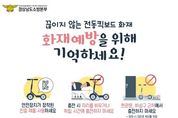 전국신문언론노동조합 강찬희 기자 | 경상남도 소방본부는 최근 주거시설 내부에서 전동킥보드를 현관에서 충전하던 중 화재가 발생했다면서, 도민들에게 전동킥보드 사용 및 충전 시 각별한 주의를 당부했다. 소방본부에 따르면 11월 19일 오후 11시 33분경 진주시 유곡동의 한 다가구주택 2층 세대 현관에서 충전 중이던 전동킥보드 배터리에서 화재가 발생했다. 이로 인해 거주자가 실내에 고립되어 거실 창문을 통해 대피하는 과정에서 연기를 흡입하고 손가락에 화상을 입는 등 피해를 입었다. 2022년 9월에도 밀양시 내이동의 아파트에서 거주자가 잠든 사이 현관에서 충전 중이던 전동킥보드 배터리에서 불이 나는 사고가 있었다. 당시에도 현관을 통한 피난이 불가능해 거주자가 세대 내 대피실로 피신하는 등 위험한 상황이 발생했다. 이처럼 현관에서 충전하던 중 화재가 발생하면 유일한 탈출로인 현관이 막혀 거주자가 실내에 고립될 수 있으며, 자칫 소중한 생명을 잃는 인명피해로 이어질 수 있다. 전동킥보드를 안전하게 사용하기 위해서는 ▲ 안전장치가 장착된 인증제품(KC) 사용 ▲ 안전한 장소에서 충전 ▲ 현관문·비상구 등