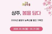 전국신문언론노동조합 강찬희 기자 | 상주시는 봄을 맞아 시민들에게 신선한 농특산물 먹거리를 합리적인 가격에 제공하고, 지역 농가와 생산자의 판로 확대를 지원하기 위해 ‘상주, 봄을 담다’봄 농특산물 먹거리 온라인몰 할인 기획전을 운영한다. 이번 기획전은 2026년 3월 9일부터 3월 31일까지 진행되며, 상주시 공식 온라인몰인 명실상주몰을 통해 나물류, 버섯류 등 봄철 농특산물 먹거리를 20% 할인된 가격으로 판매한다. 이번 행사는 최근 물가 상승으로 인한 소비자 부담을 완화하고 지역 농특산물 소비를 촉진하기 위해 마련됐다. 상주시는 이번 기획전을 통해 지역 생산자와 소비자 간 상생을 도모하고, 시민들이 제철 농특산물을 보다 손쉽게 접하며 계절의 변화를 식탁에서 체감할 수 있도록 지원할 계획이다. 상주시 관계자는 “이번 ‘상주, 봄을 담다’온라인 기획전을 통해 시민 여러분께서 봄 제철 농특산물을 부담 없이 즐기시고, 지역 농가와 생산자에게도 실질적인 도움이 되기를 기대한다”며 “앞으로도 상주시는 지역 농특산물 소비 활성화와 지역 경제 활력 제고를 위한 다양한 지원 정책을 지속적으로 추진해 나가겠다”고 밝혔다.