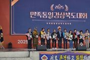 전국신문언론노동조합 강찬희 기자 | 경상북도는 22일 영주시 풍기인삼문화팝업공원에서 민족통일협의회 경상북도 주관으로 ‘2025 민족통일 경상북도대회’를 개최했다. 행사에는 김진현 경북도 안전행정실장, 배진석 도의회 부의장, 유정근 영주시장권한대행, 도재영 민족통일 중앙협의회 의장, 박종호 민족통일경상북도협의회장, 김추길 민족통일 전남회장을 비롯한 시군지회 회원 700여 명과 풍기인삼축제현장을 찾은 많은 관광객과 어울려 뜻깊은 행사를 했다. 행사는 식전 공연을 시작으로, 한반도 평화를 위한 결의문을 회원들과 함께 낭독하고, 이어서 지역사회 및 통일 안보에 이바지한 우수 유공자들에게 도지사 표창을 비롯한 다양한 상패가 수여되며 행사 분위기를 한층 고조시켰다. 특히, 행사 마지막에는 참가자 전원이 함께 ‘우리의 소원은 통일’을 합창하며, 평화통일의 필요성과 중요성을 다시 한번 되새기는 뜻깊은 시간으로 마무리됐다. 박종호 민족통일 경상북도협의회장은 대회사를 통해 “확고한 국가관과 투철한 사명감을 바탕으로 민족의 염원인 조국의 평화통일을 실현할 수 있도록 도민들의 적극적인 참여와 성원”을 당부했다. &nbs