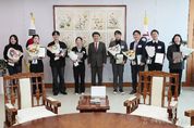 전국신문언론노동조합 강찬희 기자 | 김진태 강원특별자치도지사는 1월 20일 오후 11시 30분, 도청 통상상담실에서 강원도정 사상 처음으로 ‘국비 10조 시대’ 개막에 기여한 국회 관계관들을 초청해 감사패를 전달했다. 이번 감사패 수여는 국회 의사일정과 예산 심의 흐름을 현장에서 파악하며, 국회 동향 공유와 강원 관련 예산 자료 전달, 예산결산특별위원회 심의 과정 지원 등 실무 전반에 기여한 노고에 감사의 뜻을 전하기 위해 마련됐다. 감사패 수여 대상자(12명, 성명 가나다 순)는 △ 강소임 선임비서관(허영 의원실), △ 김남균 비서관(송기헌 의원실), △ 김영성 선임비서관(이철규 의원실), △ 김윤재 비서관(권성동 의원실), △ 박상진 입법조사관(국회사무처), △ 서윤권 주무관(국회사무처), △ 오서영 비서관(이양수 의원실), △ 이지현 비서관(박정하 의원실), △ 장수진 선임비서관(유상범 의원실), △ 정다와 비서관(한기호 의원실), △ 한재근 부장(국민의힘 원내대표실) , △ 홍수현 비서관(강승규 의원실)이다. 대표로 김영성 선임비서관은 “강원특별자치도가 국비 10조 시대를 열었고, 주민 1인당 국비 확보