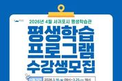 전국신문언론노동조합 강찬희 기자 | 서귀포시는 시민의 다양한 배움의 기회를 제공하기 위해 2026년 4월 개강 서귀포시 평생학습관 프로그램 수강생을 모집한다고 밝혔다. 이번 교육과정은 직업능력, 인문교양, 문화예술 등 3개 분야, 15개 강좌, 총 235명의 수강생을 모집하여 운영할 예정이다. 수강신청은 16일 오전 9시부터 25일 오후 6시까지 서귀포시 평생학습관 홈페이지에서 온라인을 통한 선착순 접수로 진행되며, 정원 미달 강좌는 26일부터 27일까지 이틀간 추가접수를 받는다. 모집 대상은 만 19세 이상 서귀포시민이며, 서귀포시민을 우선으로 선발하고 타지역 거주자는 후순위로 선정된다. 특히, 지역청년의 성장을 지원하기 위해 직업능력 분야 2개 과정은 청년층(만19세~39세)를 우선 선발(정원의 30%)하여 운영한다. 서귀포시 관계자는 “평생학습관에서는 자격증 취득과정 운영뿐만 아니라, 직장인과 시민들의 학습 접근성을 높이기 위해 주말 및 야간 프로그램을 확대하여 시민들의 평생학습 참여 기회를 넓히고자 노력하고 있다”라고 말했다.