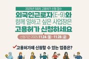 전국신문언론노동조합 강찬희 기자 | 외국인근로자(E-9)와 함께 일하고 싶은 사업장은 고용허가 신청하세요. - 신청기간 2025.11.24.(월)~11.28.(금) ■ 고용허가제 신청할 수 있는 업종은? 제조업, 조선업, 건설업, 농축산·어업, 서비스업, 임업, 광업 고용허가서 발급신청서를 작성하여 고용24 누리집 또는 고용센터에 제출하세요. ■ '25년 5회차 신청 일정은? '25.11.24.(월)~11.28.(금): 사업장 고용허가 신청 → 12.12.(금): 사업장 선정 발표 → 제조·조선·광업 12.15.(월)~17.(수) 그 외 12.18.(목)~12.22.(월): 고용허가서 발급 → '26.1월~: 외국인 근로자 입국