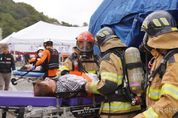 전국신문언론노동조합 김성길 기자 | 전라남도소방본부는 12일 여수 소노캄 호텔 일원에서 대규모 지진 상황을 가정한 ‘2025년 국가단위 긴급구조종합훈련’을 진행, 65개 유관기관과의 현장 중심 협업체계를 점검했다. 소방청과 전남도소방본부는 이날 규모 7.5의 지진으로 건물과 거북선대교가 붕괴되고, 선박 화재와 산불 등 동시다발적 화재와 폭발이 발생하는 복합 재난 상황을 가정해 실전과 같은 훈련을 펼쳤다. 소방청이 주관하고 전남도소방본부가 주최한 이번 훈련은 지진 등 대형 복합재난 발생 시 유관기관 간 긴급구조 대응 역량을 강화하고, 현장 중심의 통합지휘체계 확립을 위한 국가 차원의 종합훈련이다. 행정안전부, 산림청, 국방부를 비롯해 전국 10개 시·도 소방본부 등 총 65개 기관에서 1천500여 명이 참여했으며, 헬기, 대용량방사시스템 등 200여 대의 각종 장비도 투입돼 대규모 협업 대응 체계를 점검했다. 훈련 상황은 여수 오동도 해상 인근에서 발생한 규모 7.5의 강진으로 여수 일대에 광범위한 피해가 발생하고, 이에 따라 총 623명이 넘는 사상자가 발생한 것으로 설정됐다. 특히 구