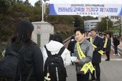 전국신문언론노동조합 김성길 기자 | 전라남도교육청이 2026학년도 대학수학능력시험일인 13일 시험장을 찾아 수험생을 응원했다. 김대중 교육감을 비롯한 도교육청 간부들은 이날 오전 75지구 제7시험장인 순천복성고등학교 교문 앞에서 시험을 치르기 위해 들어서는 수험생들을 반갑게 맞이하며 최선을 다해줄 것을 당부했다. 순천복성고 현장에는 김 교육감과 박철완 중등교육과장, 허동균 순천교육지원청교육장, 강종수 순천복성고 교장 등이 “파이팅”을 외치며 수능 대박을 기원했다. 이날 오전 황성환 부교육감도 교육청 간부들과 함께 문태고등학교를 방문해 수험생들을 격려했다. 김대중 교육감은 “모든 수험생 여러분, 정말 수고 많았다. 오늘은 여러분의 날이다”며 “결과에 대한 부담은 내려놓고, 그동안의 노력이 만들어준 자신감을 믿으며 차분히, 끝까지 최선을 다하길 바란다”고 말했다. 한편, 이날 목포·여수·순천·나주·광양·담양·해남 등 7개 시험지구, 총 46개 시험장에서는 1만 4,952명의 수험생이 2026학년도 대입 수능시험을 치른다.