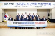 전국신문언론노동조합 강찬희 기자 | 전라남도 시군 의회 의장협의회는 지난 10월 1일 영광군의회에서 개최된 제307회 정례회의에서“광주광역권 개발제한구역 전면 해제 촉구 건의안”을 만장일치로 채택했다. 이번 건의문은 장성군의회 심민섭 의장이 발의한 것으로 광주광역권을 둘러싼 4개 시 군(장성, 담양, 화순, 나주)에 수십년간 과도한 개발제한구역을 지정하면서 수도권에는 과밀억제를 명분으로 개발제한구역 제도를 더욱 엄격히 적용해야 하나, 오히려 수도권을 중심으로 해제를 해주면서도 비수도권인 광주광역권에는 여전히 경직되고 일률적인 규제를 강요하는 것은 명백한 지역 역차별이자 지방시대 국가균형발전 정책에도 역행하는 조치라며 정부에 전면 해제를 강력히 요구했다. 건의문에는 ▲ 광주광역권 개발제한구역 전면 해제 ▲ 지역발전에 대한 사항을 지방정부가 결정할 수 있도록 모든 권한을 자치단체에 이양할 것을 촉구하는 내용을 담고 있으며, 건의문을 발의한 심민섭 의장은“광주광역권 개발제한구역은 시대적 역할을 다한 만큼, 지역간 균형발전을 실현하고 나아가 국가 전체의 지속가능한 발전을 도모하기 위해서 개발제한구역 전면 해제가 반드시 필요하다.”