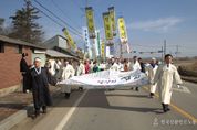 전국신문언론노동조합 강찬희 기자 | 132년 전 부당한 권력에 맞서 평등 세상을 외쳤던 농민들의 뜨거운 함성이 정읍 일대에 다시 울려 퍼졌다. 26일 이평면과 고부 일원에서 열린 고부봉기 재현행사가 성황리에 막을 내렸다. ㈔동학농민혁명 고부봉기 기념사업회가 주최·주관하고 정읍시가 후원한 이번 행사는 동학농민혁명의 출발점인 ‘고부봉기’의 역사적 의미를 되새기기 위해 마련됐다. 행사 당일 이평, 고부 등 옛 고부군 지역 주민들과 관람객들은 직접 농민군이 돼 역사적 장면을 체험하는 특별한 경험을 나눴다. 이날 행사의 백미는 단연 ‘농민군 진군 행렬’이었다. 이평면 예동마을에서 출발해 말목장터로 향하는 대열은 1894년 당시의 긴장감과 결기를 실감나게 재현했다. 말목장터에 도착한 대열이 격문을 낭독하자, 현장을 지켜보던 관람객들 사이에서 박수와 환호가 터져 나왔다. 이어 진행된 공식 기념식에서는 동학농민혁명의 숭고한 정신을 서사적으로 풀어낸 창극과 첨단 가상현실(VR)을 접목한 융복합 공연이 무대에 올라 관객들의 눈과 귀를 사로잡았다. 행사는 옛 고부 관아 터(현 고부초등학교)에서